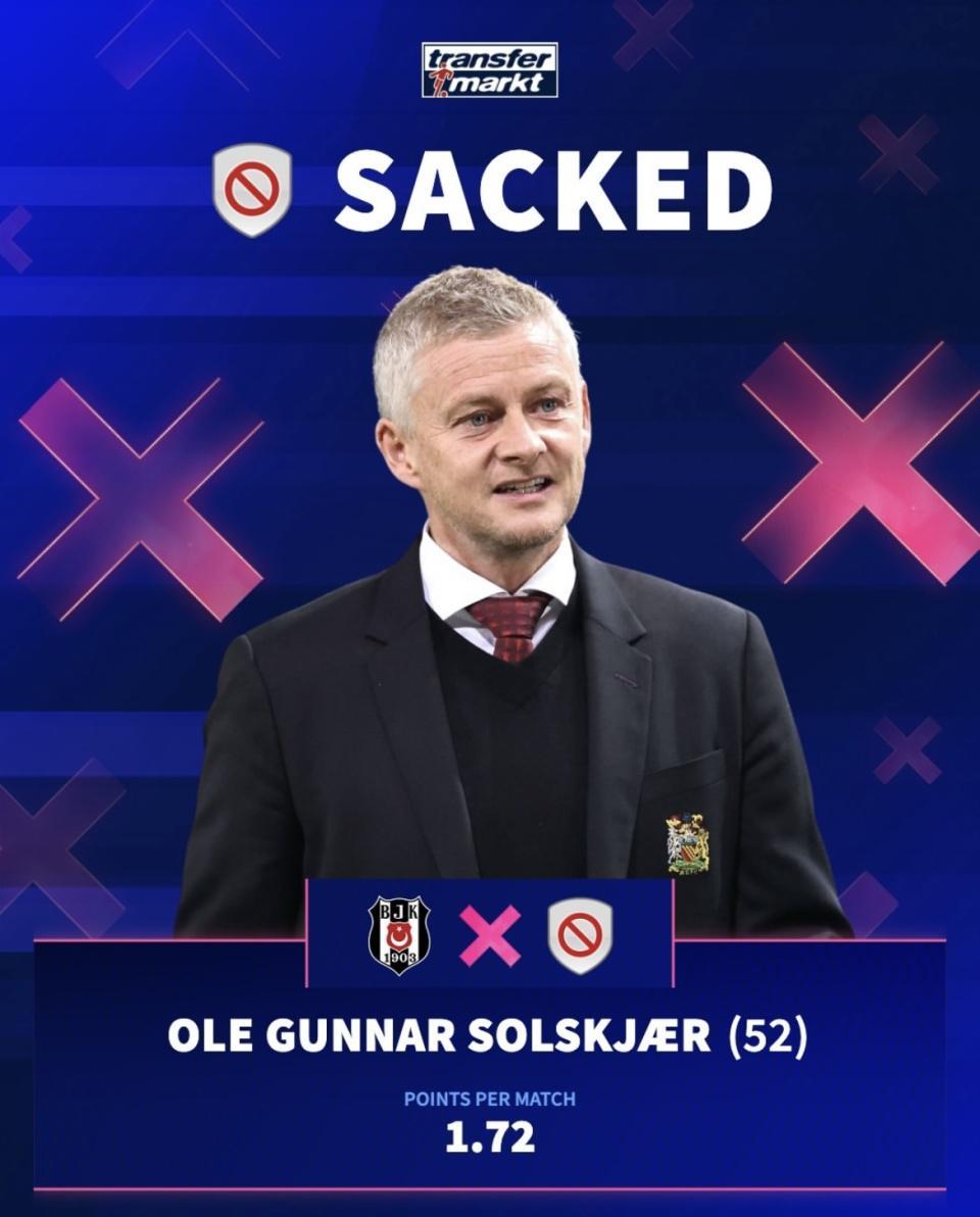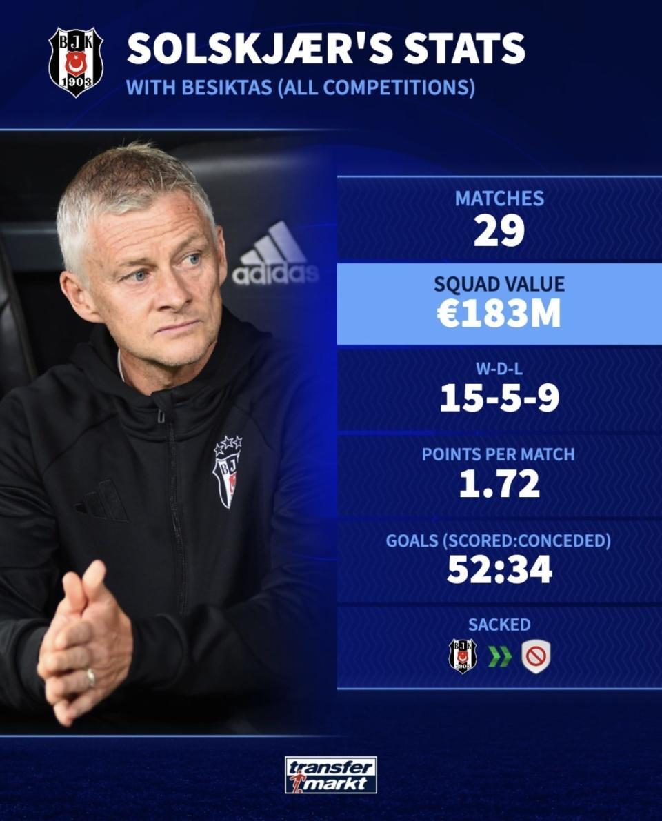 与阿莫林形成鲜明对比的,是曾执教曼联的索尔斯克亚。离开英超之后,他短暂执教了土超豪门贝西克塔斯。