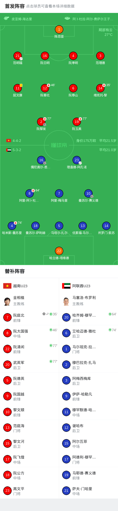 kaiyun-90分钟:U23越南2-2阿联酋U23,阮庭北传射