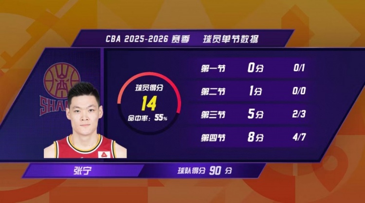 同样本轮伤愈复出的还有山西汾酒队后卫张宁。因伤缺席12场比赛后,张宁在客场对阵北京北汽的比赛中回归。本场张宁出战30分钟,得到14分1篮板2助攻1抢断,正负值+14为全队最高。尤为关键的是,张宁在末节独得8分,最后阶段连续突破、跳投得分,再次于关键时刻助队取胜。