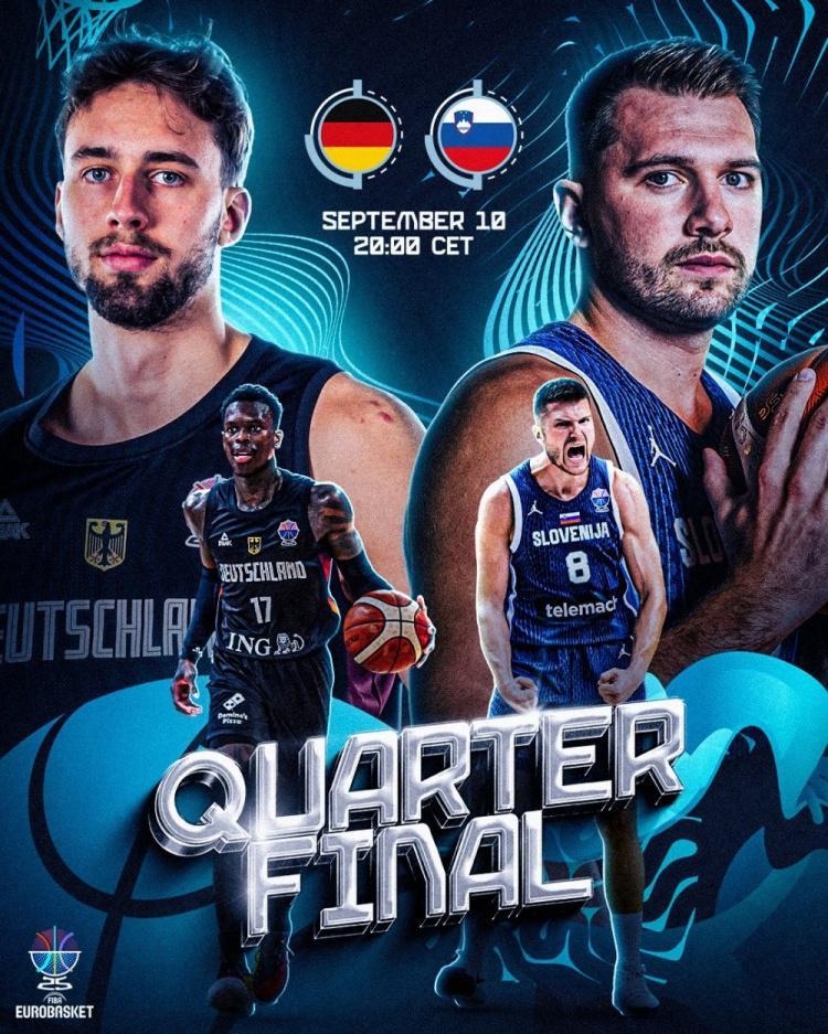 直播吧9月11日讯 男篮欧锦赛1/4决赛迎来一场强强对话,东契奇领衔的斯洛文尼亚对阵实力强劲的德国。