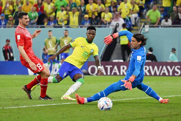 第27分钟,拉菲尼亚右路起球入禁区,维尼修斯后点右脚扫射被瑞士门将佐默飞身扑出底线。